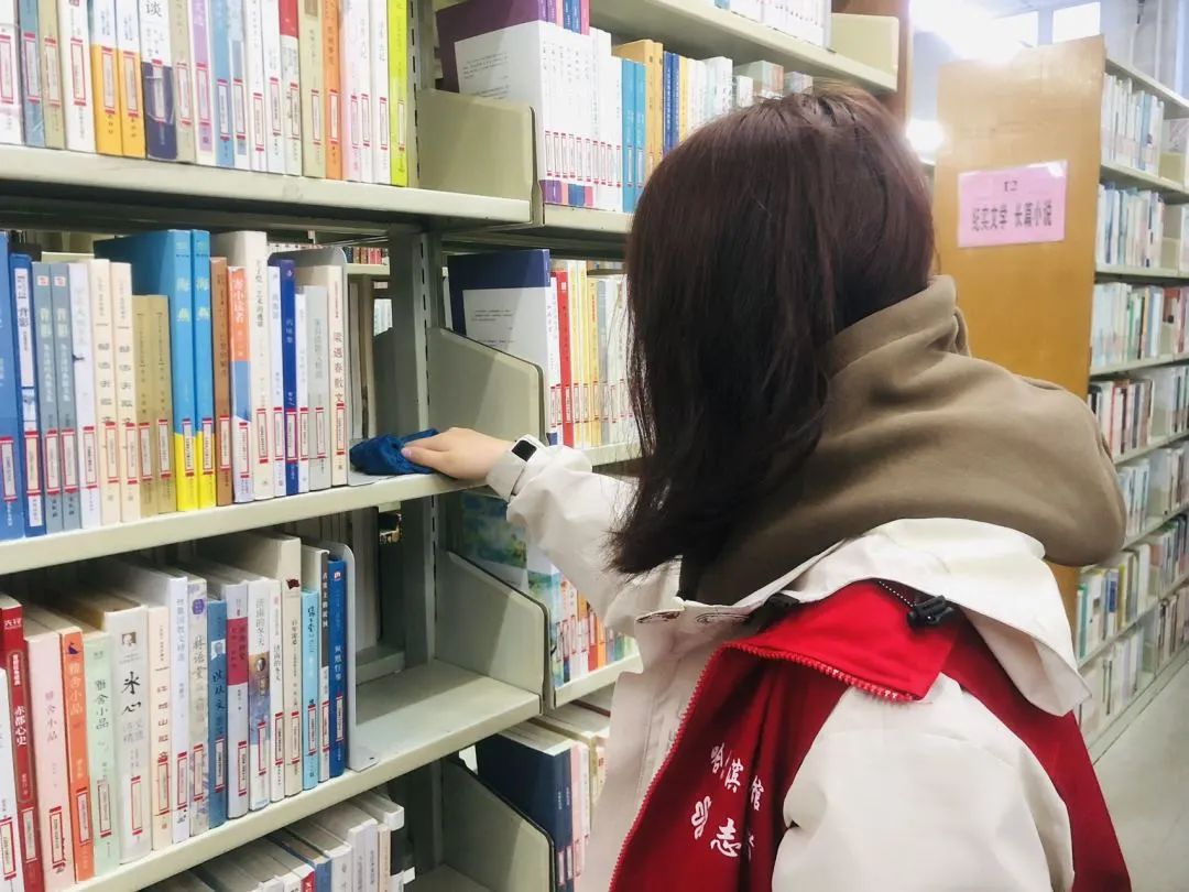 志愿服务期间,志愿者们积极进行室外铲雪工作,打扫馆内卫生,擦拭暖气管道,将图书馆的书架和地面清理的一尘不染,在志愿者们的清理后,图书馆内焕然一新。