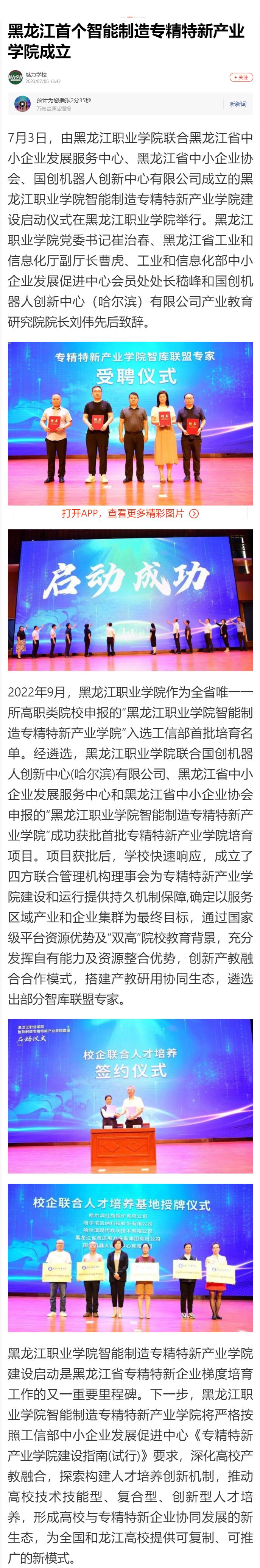 【搜狐新闻】黑龙江首个智能制造专精特新产业学院成立