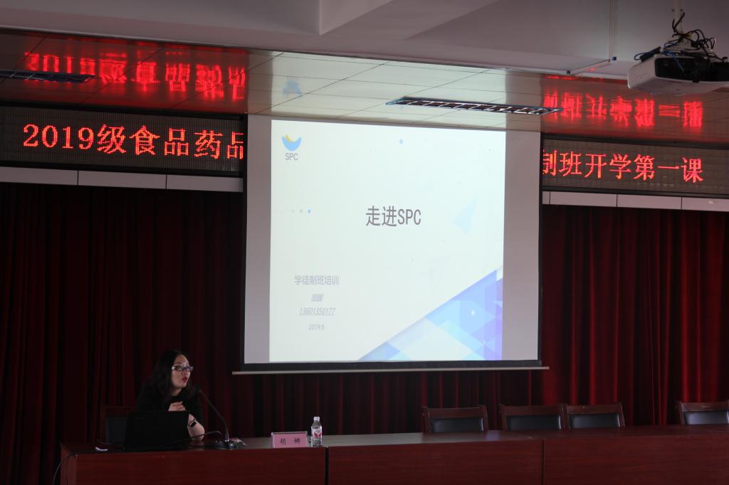 开班式上,胡娜为2019级全体同学发放了新工服,新生代表上台发言,表达了成为现代学徒制班学生和巴黎贝甜员工的喜悦心情,并表示一定会珍惜学校和企业为他们提供的平台,刻苦学习技能,磨炼意志,成为一名可以回报社会的有用之人。胡娜为2019级巴黎贝甜班学生(学徒)上了精彩的第一课,也标志着食品药品学院2019级巴黎贝甜现代学徒制班正式开班。胡娜毫无保留地跟同学分享她在巴黎贝甜服务10年来的经验,并介绍了公司未来五年的发展规划、巴黎贝甜员工待遇及职涯发展路径等,鼓励同学们努力向前就会有收获,公司会始终关注每个同学的成长。这精彩的一课让学生们深刻感受到了企业的关怀,更坚信了自己的选择。