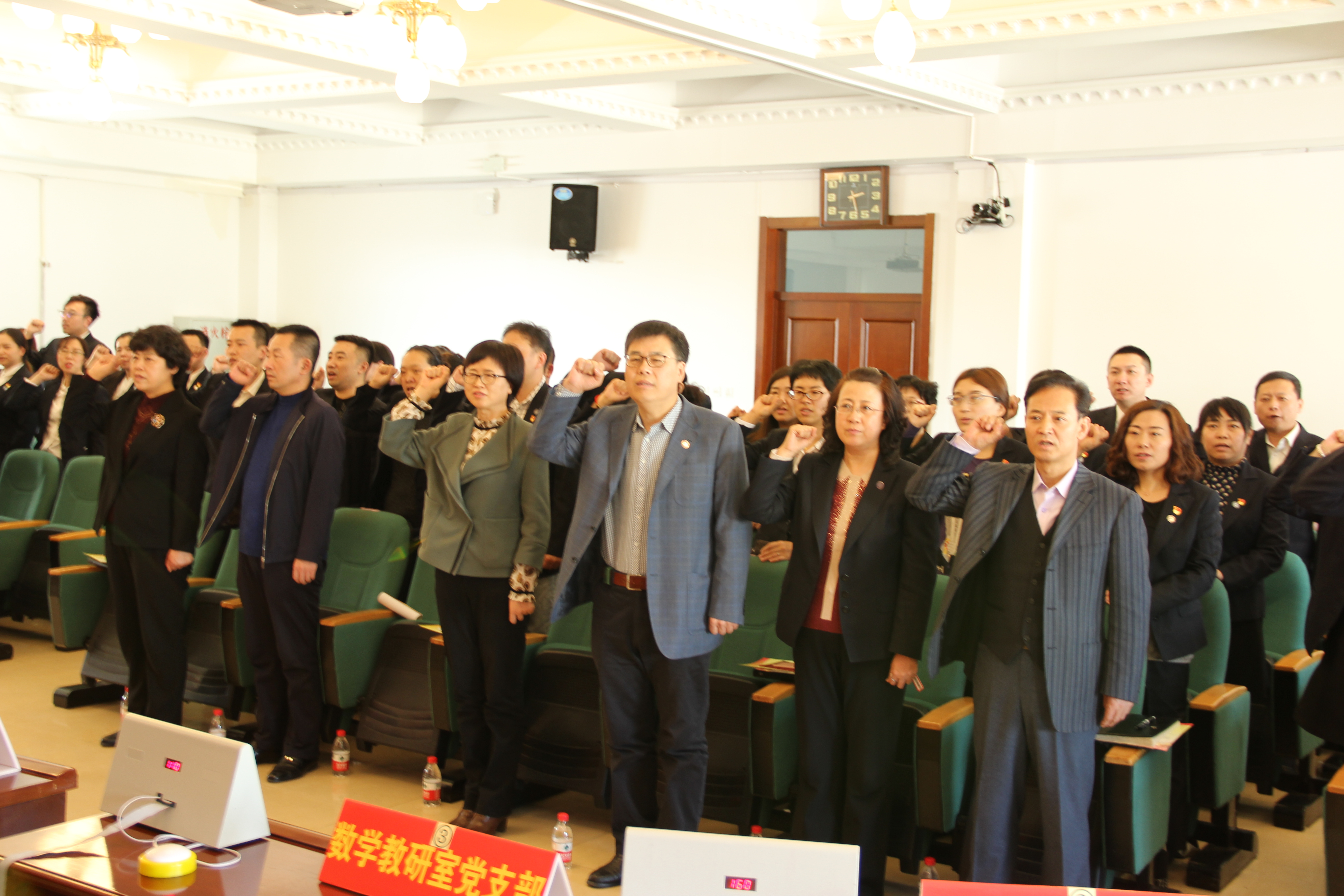 主题教育活动分为三篇。第一篇是“双讲”篇,是为了贯彻落实学校党委“不忘初心、牢记使命”主题教育活动安排和深入开展“讲龙职好故事,讲好龙职故事”主题“双讲”活动要求,学院党总支坚持自下而上、自上而下的原则,从112名教职工中遴选出7个先进典型,这些典型代表性强、辐射面广,示范作用突出。通过对典型事迹的深入挖掘和提炼,通过宣讲人生动地讲述、对大家进行了一次精神洗礼,达到了崇尚先进、弘扬正气、凝聚力量,推动工作的目的。第二篇是竞赛篇,是对前段时间学习一次集中检验,也是对下一步学习十九大精神的再动员、再部署。竞赛由必答题、抢答题、观众题三个环节组成,现场气氛严肃、热烈,达到了以赛促学的目的。第三篇是宣誓篇,由党总支书记孔繁海领誓,全体党员起立,举起右拳,面对庄严的党旗重温了入党誓词,使大家经受了一次深刻的党性锻炼和精神洗礼,增强了全体党员干部不忘初心、继续前进的坚定信心,积极推动通识教育学院在助力优质院校建设、成果导向教育教学改革和学院转型发展的新征程中再创新辉煌!