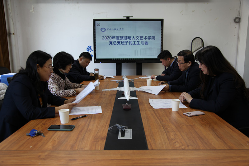12月30日,旅游与人文艺术学院党总支召开班子2020年度民主生活会,学校党委组织部副部长刘璇出席会议,学院党总支书记杨东辉、院长张玲、副院长李勇民、副院长于艺、党总支委员詹可佳参加会议,党总支书记杨东辉主持会议。