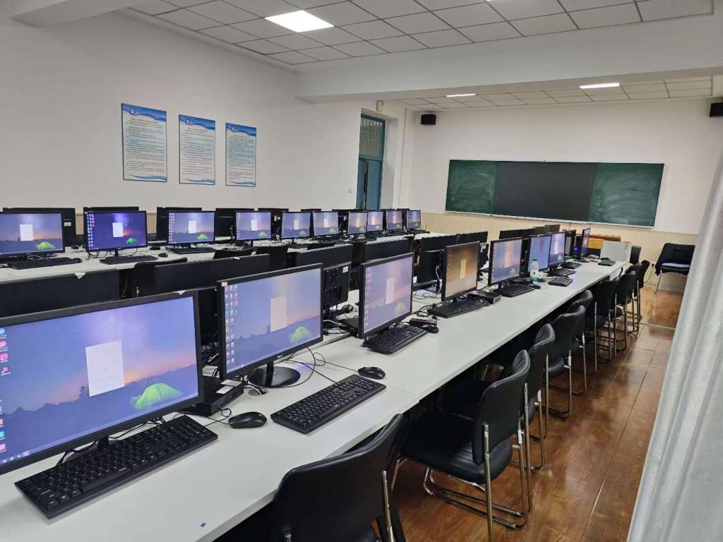 本实训室内设有40个工位,配备有先进的多媒体设备、联网计算机、商务英语跨境电商系统、商务英语视听说系统,主要承担商务英语专业课程教学任务,可进行商务英语跨境电商、商务英语视听说等内容的模拟仿真训练,主要服务于商务英语专业。