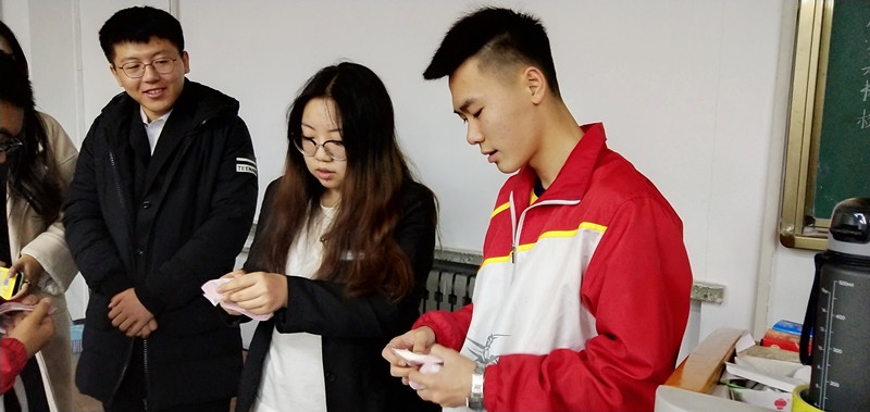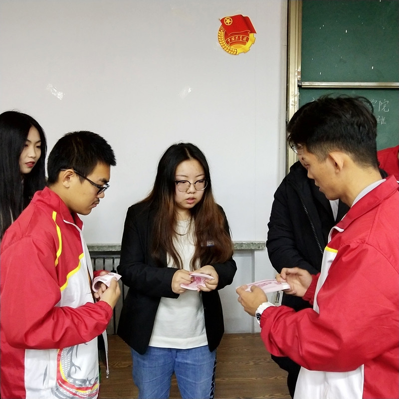 班会上,会计金融学院点钞社同学们向我院同学展示点钞动作、纸币真伪识别、纸币的整理、捆条捆绑方式等技巧,他们详细演示、耐心讲解、手法娴熟,我院同学积极学习,认真练习,同学们参与度高,气氛活跃。