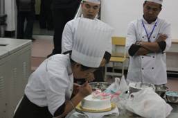2014年11月1日,二校区校园内秋风瑟瑟,但是二号实训楼西侧的一至三层的实训室里,却滚动着一股股热浪,这里正在进行黑龙江省高职院校食品类专业学生技能大赛。一楼的焙烤加工实训室,选手们妙手制作的蛋糕和西点,飘散着诱人的香气;二楼的大肠菌群检测赛场,无菌操作台前选手们一丝不苟地操作着;三楼的亚硝酸盐含量检测赛场,二个选手分工协作,在实验台前一忙就是二个半小时……窗外飘舞的落叶,似乎是在为这一群执着的学生鼓掌……